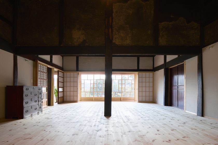 私との朝一番の現場打ち合わせでスタート。隣り合う脱衣室の床高さや手摺の高さ、リモコン位置等を確認していきます。据え付け作業にはいる前に床下の清掃作業を初めに行います。