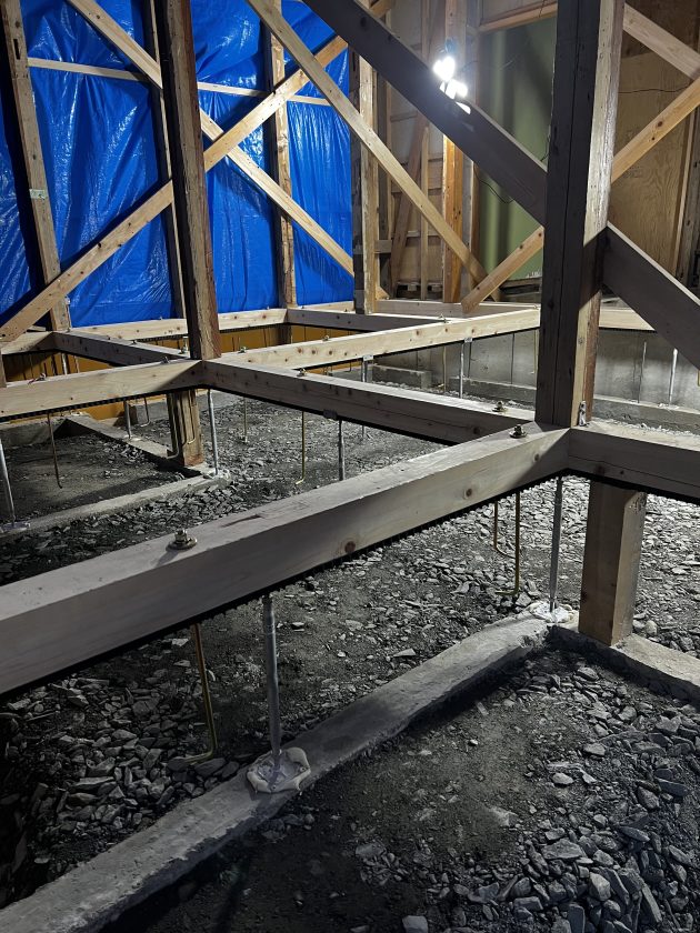 湊町の家。梁と砕石。