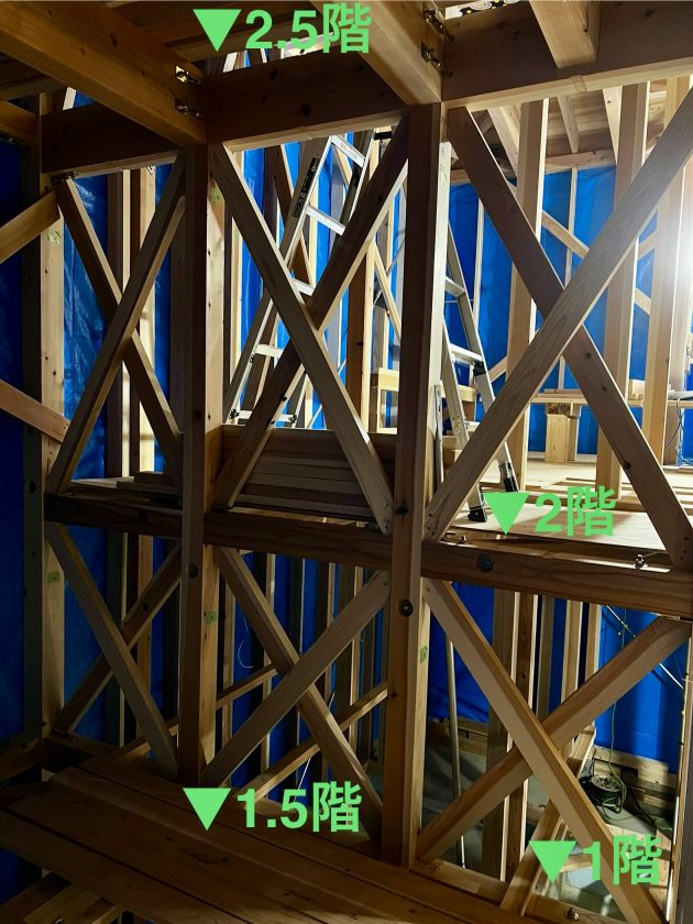佐沼の家は半階分スキップした 2.5階建て。文章だけでは伝わりづらいので写真を添付してみました。